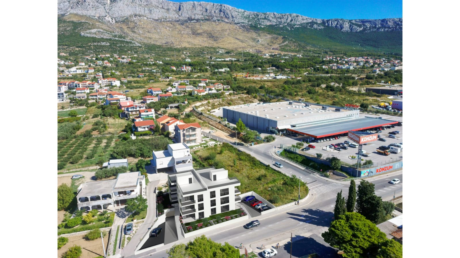 Zgrada u Kastel Gomilici. Zapoceta u 2022 i useljena u Srpnju 2023.